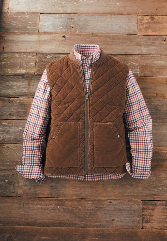 Another piece Mon Pere Jr. recommends is a reversible quilted corduroy vest by Faherty. “There are too many great overshirts/ CPOs to list, but my favorite might be our own Reserve check shirt jacket,” he says. “It’s just perfect for almost any guy’s wardrobe.”