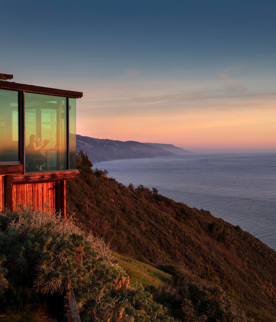 As a founding member of the Beyond GreenSM group of sustainabilityfocused hotels, Post Ranch Inn leads by example when it comes to incorporating natural materials such as wood, stone, and Corten® steel into its architecture and other aspects, including pumping water on-site and using native plants for drought-resistant landscaping. Moreover, the property’s 100 acres provide a habitat for several endangered local species.