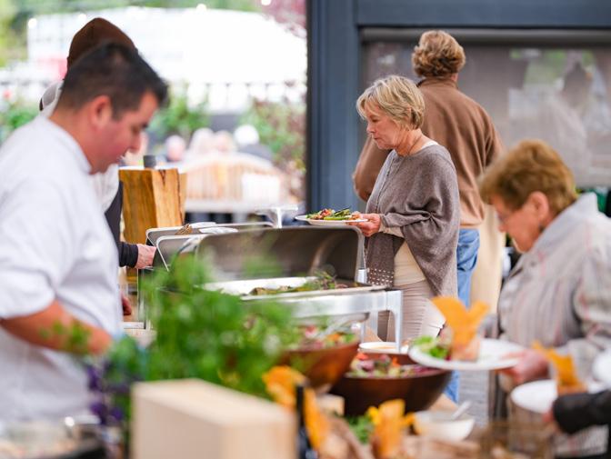 dining room, outdoors in the heated pergola, or throughout the entire restaurant.