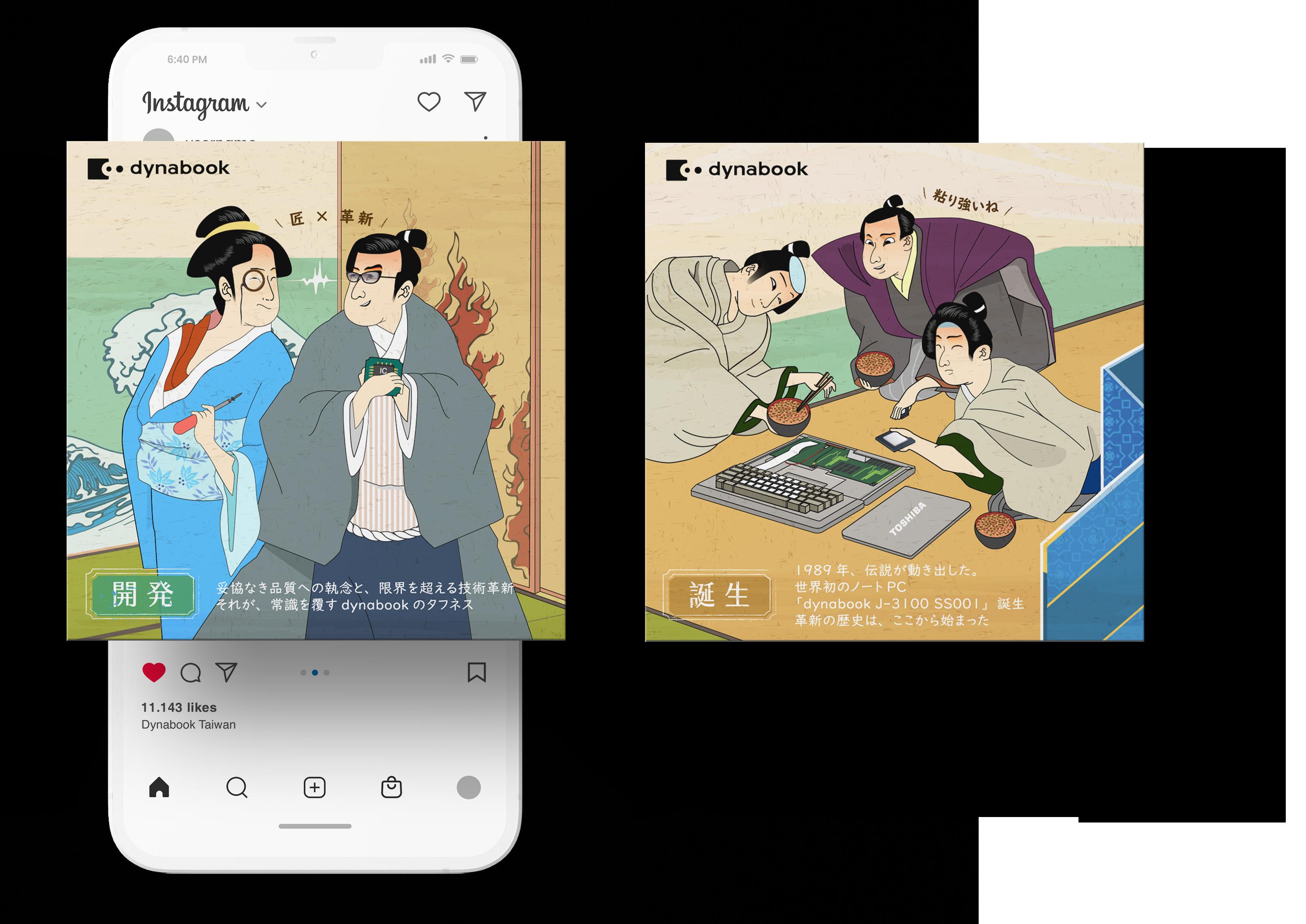 浮世絵スタイルで魅せる「革新・研發・誕生」の三部作 台湾dynabookのInstagramアカウント向けに制作 した首圖シリーズ。