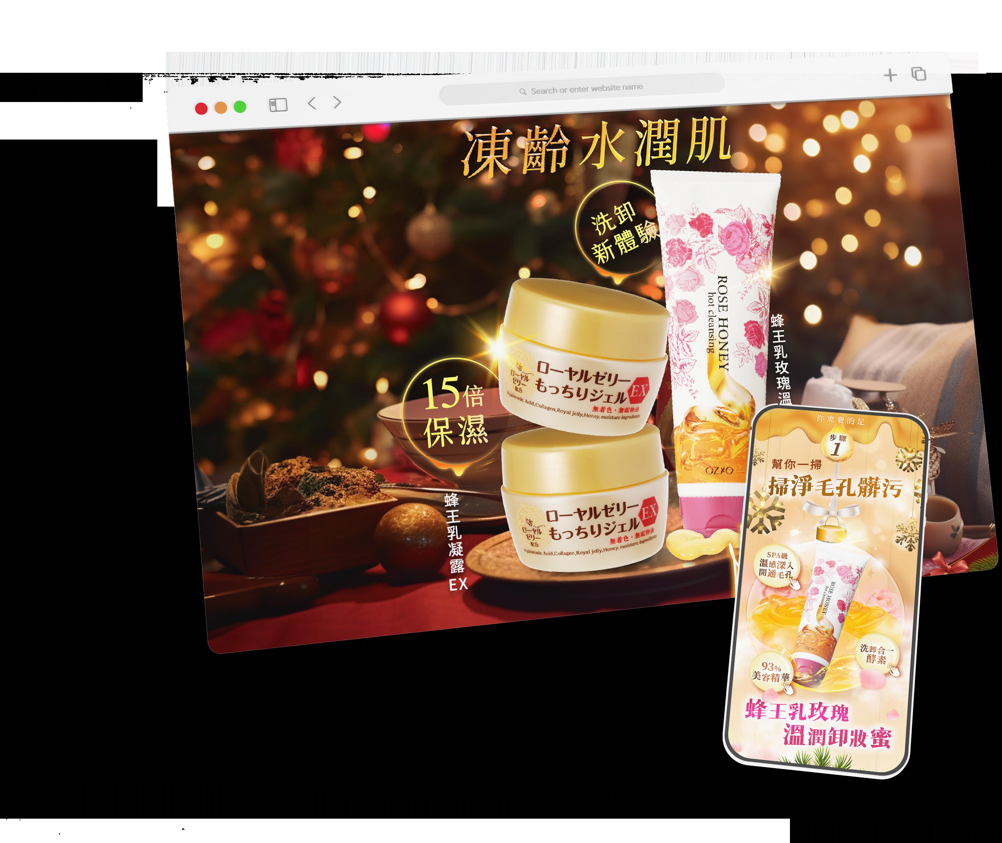 商品を自然にホリデーモチーフへ溶け込ま せることで、季節感と特別感を高めたビジ ュアルに仕上げました。