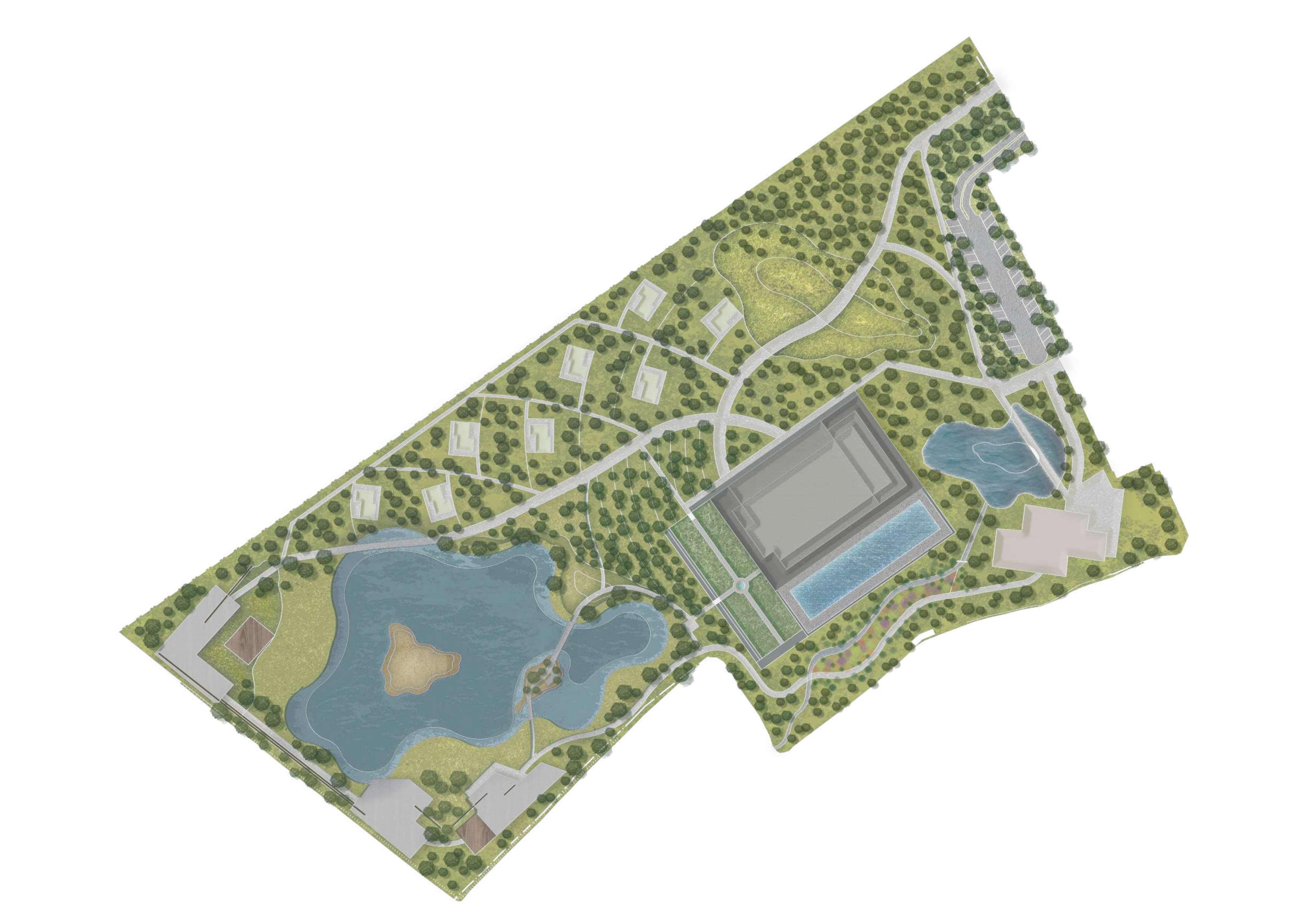 本次設計案因主題選用莊園,因此在機能性上會較為多元,我們除了利用道路系統及軸線的營造外,建築對於機能的建立 有較重要的地位。以實空間 (建築) 作為機能的匯集中心,配合旁邊的虛空間 (藍綠帶),營造較為完善的休憩配套系統。