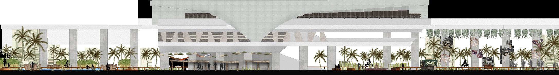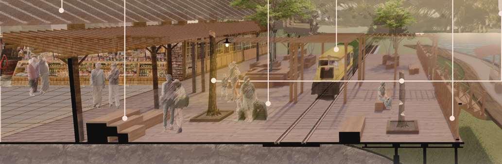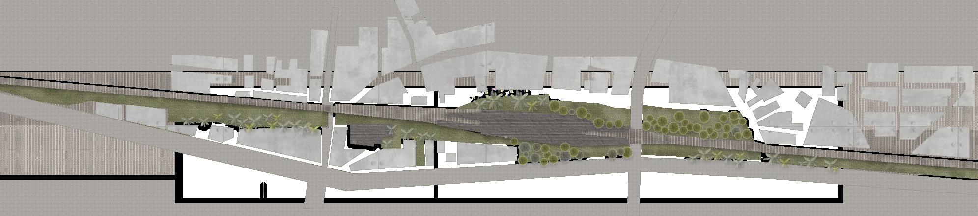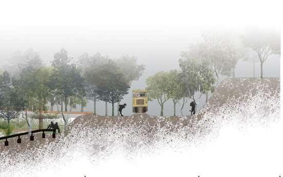 穿梭高架間的地景遊戲場將特色市集、兩側的分區做串 連,豐富了高架所帶來的感受。