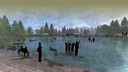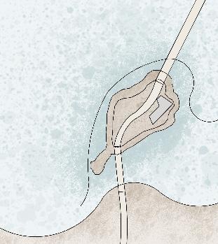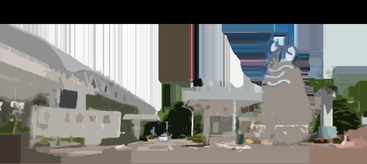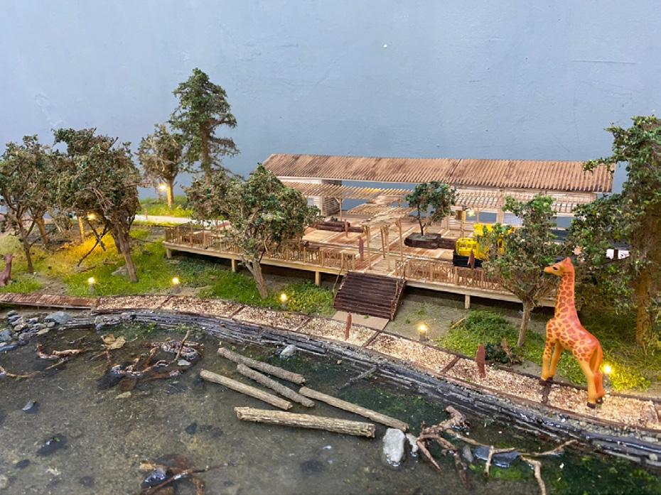 針對半日遊的遊客,本設計案以此咖啡廳作為活動場所,建築風格配合全區建材風格為主,而此咖啡廳的亮點為前方的大 片水景,映照一旁的旅館及樹林,創造特殊視覺價值。