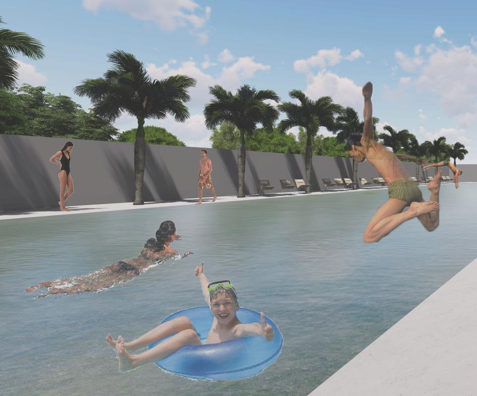 〈一〉室內機能住宿旅館 選擇室內機能住宿房型的房客,在住宿體驗中能在此棟擁有多種活動機能,建 築旁提供泳池空間及戶外下沉莊園廣場,一樓為主要服務設施位置,亦有開放 空間供房客使用,完善住宿體驗。