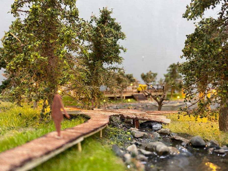 藍色細砂模擬海洋畫面,並配合竹製海島創造南洋島嶼的 獨特美景