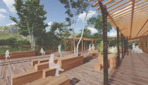 作為海島意象圍塑的重要元素,為此區休憩空間,以竹元 素搭建,南嶼驛站之起點