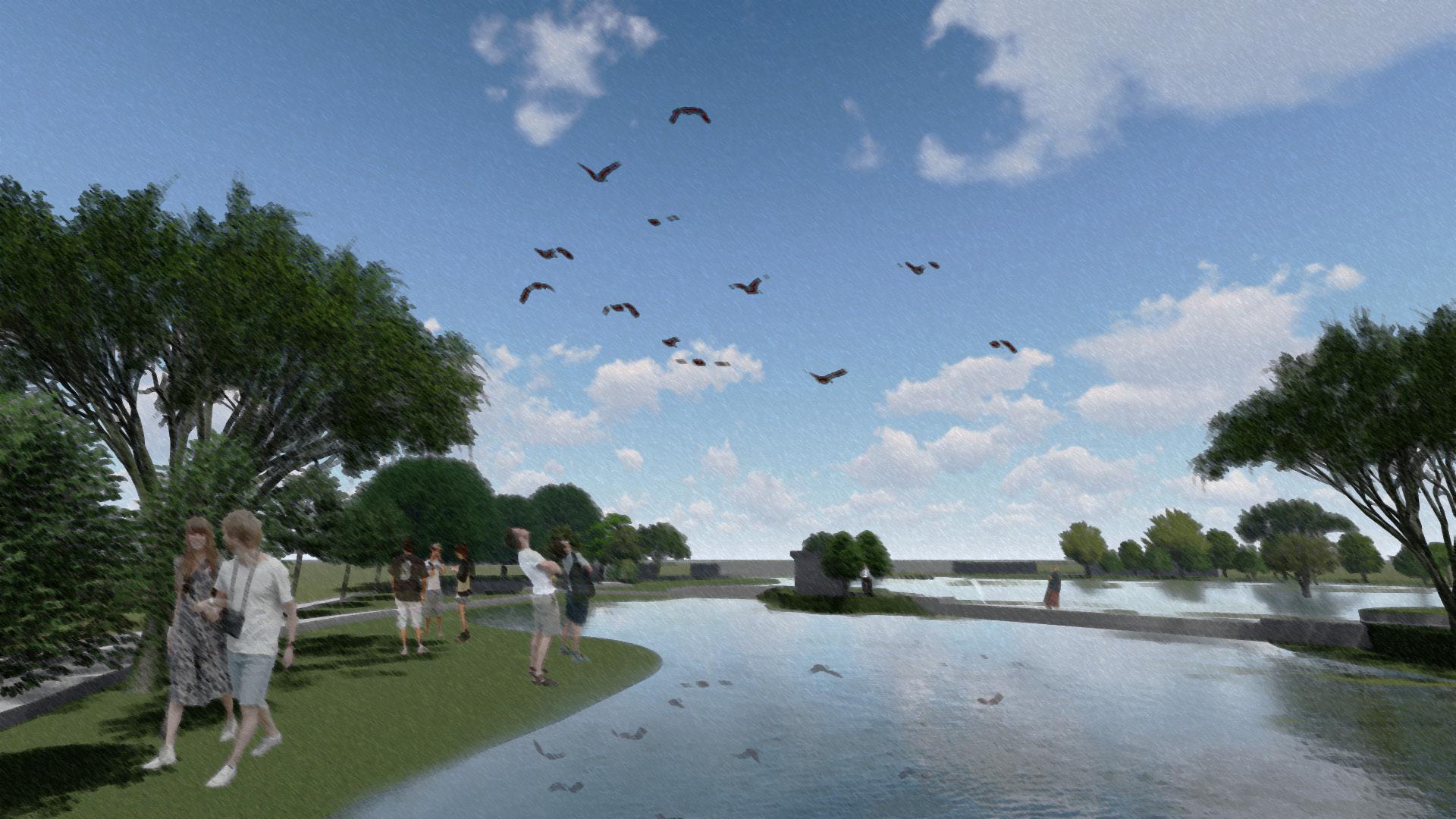 配合綠空廊道政策的配置,在南嶼場域創造高腳屋意象的 自行車道,為串連四區重要元素