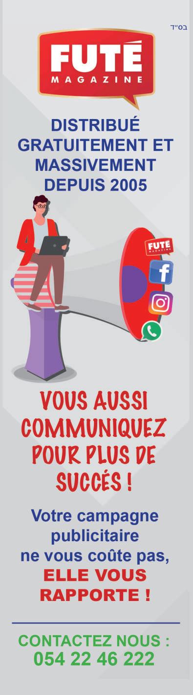 : Publicité םוסרפ : FUTÉ MAGAZINE et RADIO FUTÉE Chmouel : 054-22 46 222