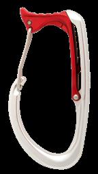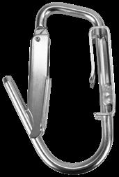 Gefertigt aus vollem Aluminium. Befestigung am Gurtband bis 51 mm über eine Platte mit vier Schrauben. Durch die breite Auflage ist ein Verdrehen ausgeschlossen. Mit Verschluss zum aktiven Verriegeln mit einer Hand, so dass ein unbeabsichtigtes Einhängen von Seilen oder Ästen verhindert wird.