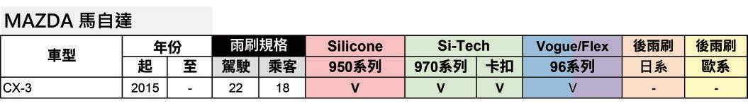 雨刷對照適用本