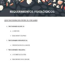 Hipotético: El jefe de su familia después de este confinamiento por la pandemia, decide replantear el diseño de su vivienda y le solicita al hijo Arquitecto le desarrolle una propuesta de diseño para la nueva vivienda. Para ello, el Arquitecto debe de conocer los requerimientos Físicos, Psicológicos y Fisiológicos de cada miembro del grupo familiar antes de proyectar.