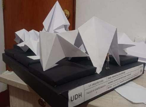 Elaborar una composición aplicando las técnicas de plegado y configurar 10 espacios, teniendo las siguientes consideraciones: un espacio principal y 9 secundarios trabajo de desniveles en la base escalas espaciales relaciones espaciales manejo de equilibrio visual esquema compositivo proporción y armonía se debe evidenciar una secuencia espacial Definir un acceso.
