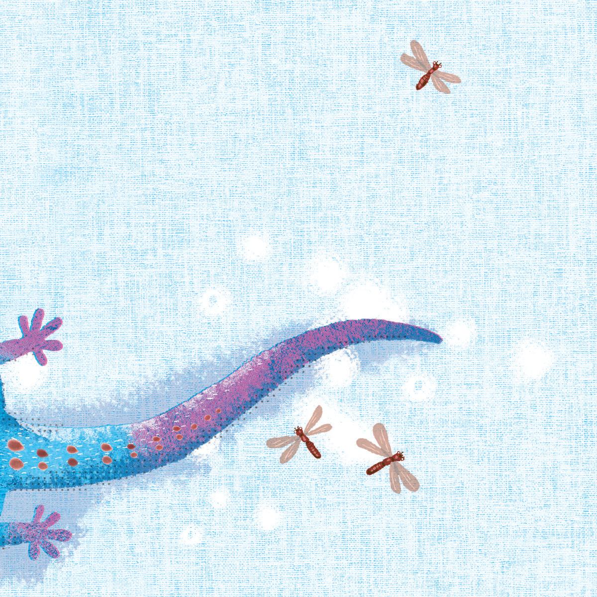 ตุ๊กแกตวัดลิ้นกินแมลงบนผนัง