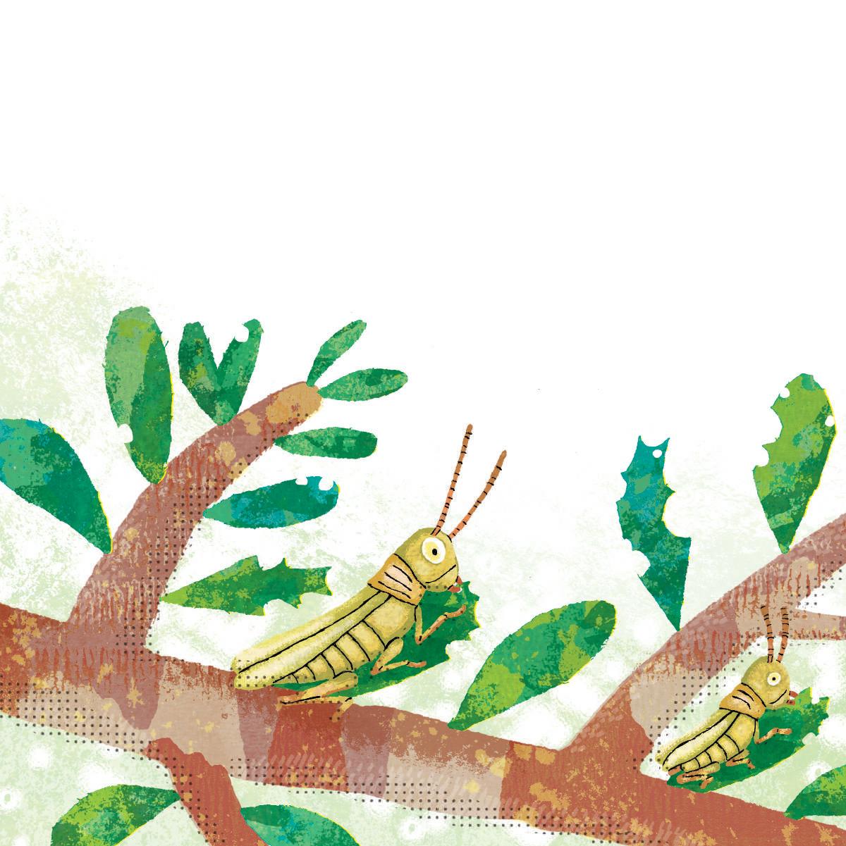 ตั๊กแตนกัดกินใบไม้อยู่บนต้นไม้