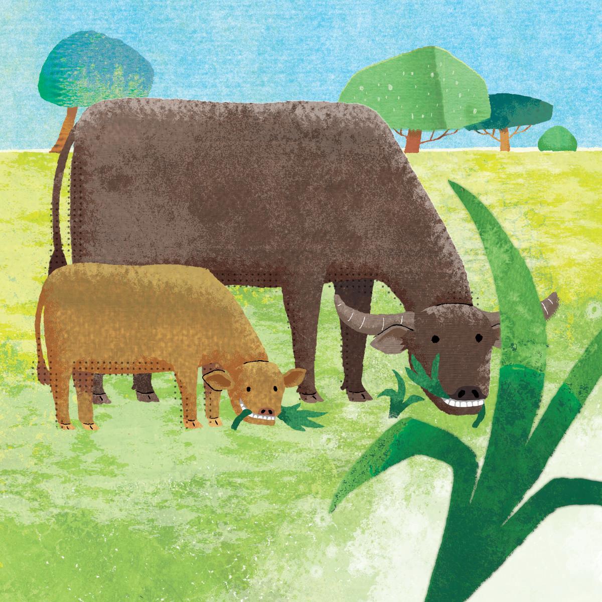 ควายดึงหญ้า มาเคี้ยวช้าช้า