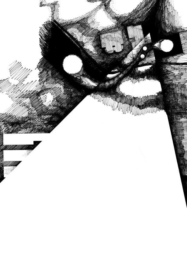 A giant spaceship was shot down and plummeted from the sky. Fortunately, the city's infrastructure temporarily supported the wreckage of the ship, minimizing the damage to residential buildings. After dividing the resources found inside the spaceship, people looked at the broken remains and began to fantasize about the space; since these remnants were already entangled with the infrastructure, they decided to create distinctive spaces in the area, utilizing this randomness, something that had been lacking since its development.