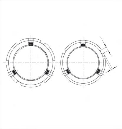 Afterassemblinginternalandexternal threads,theeffectivecontactsurface islarger,causingthefrictionandaxial force to increase. NIKKI’s locknut issecuredtopreventunintentional looseningandimprovesrotarystability.
