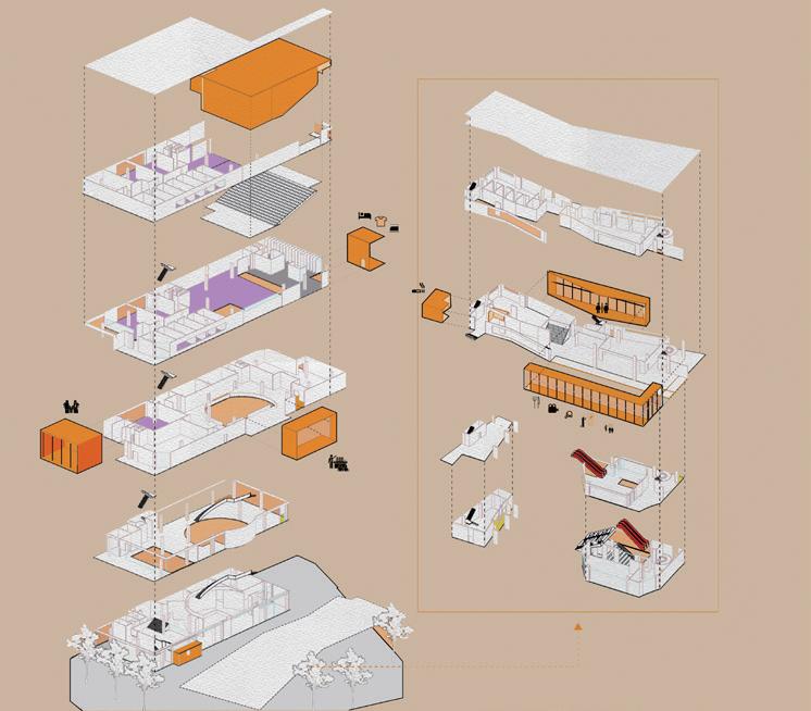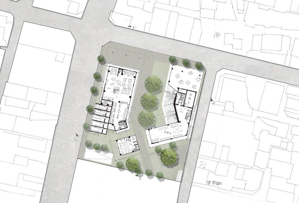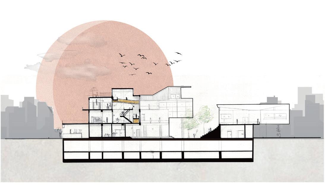 Using the staggered space of the long ramp to reproduce various activities that residents engage in front of their homes or stores and using the characteristic of the ramp crossing layers to create a different atmosphere from just walking in the arcade, more daily dialogues are created to promote the residents' sense of identity and belonging to the community center. At the same time, the staggered space allows users of different ages to create more exchanges.