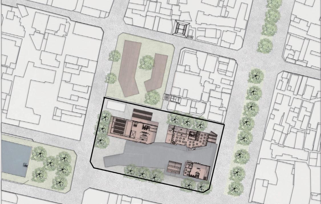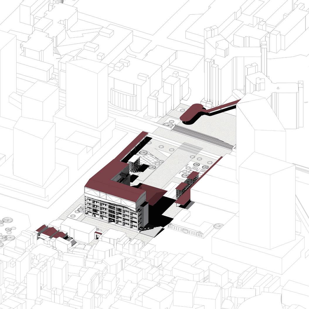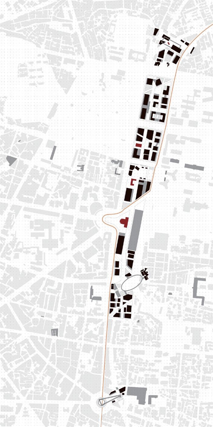 One of the selected nodes for this project involves the renovation of the existing cultural and creative center. By preserving the original framework and inserting new volumes inside that respond to urban activities, we aim to connect Cheng Kung University and the historic district. A landmark steel structure will be added on top to reflect the iconic construction style associated with the node. This plaza is envisioned as a place that encapsulates memories from different eras and resists the encroachment of capitalism. The design will ensure that this area becomes a vibrant public space, celebrating Tainan's historical and cultural heritage while fostering contemporary urban life.