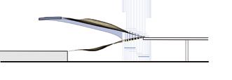步道延伸成為階梯座位的一部分。底下的空間也富有豐富的凹凸彎曲變化。