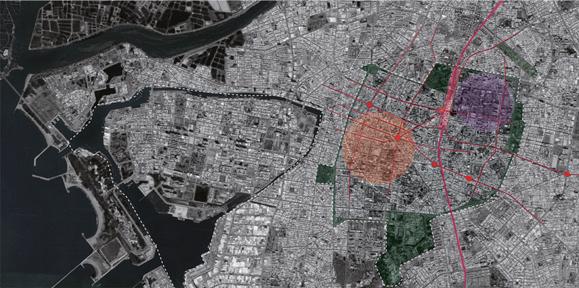 The first part focuses on analyzing Tainan's urban spatial structure and identifying current issues, with the goal of stabilizing the city's structure through post-railway underground planning. Historically, Tainan's urban fabric has evolved from the cross streets formed during the Qing Dynasty by Minquan Road and Xinmei Street, to the city improvement plans during the Japanese colonial period, which included the greenway defining the city's boundaries. Today, the city has expanded beyond the greenway due to the silting of the Taijiang Inner Sea in the west and changes in transportation. Tainan is now encircled by two rings formed by the greenway and waterways. Our primary focus is on the area affected by the railway underground project, aiming to reshape urban spatial nodes to stabilize and make the city structure more flexible. This will help Tainan sustain its vitality and adapt to economic changes while maintaining its urban identity.