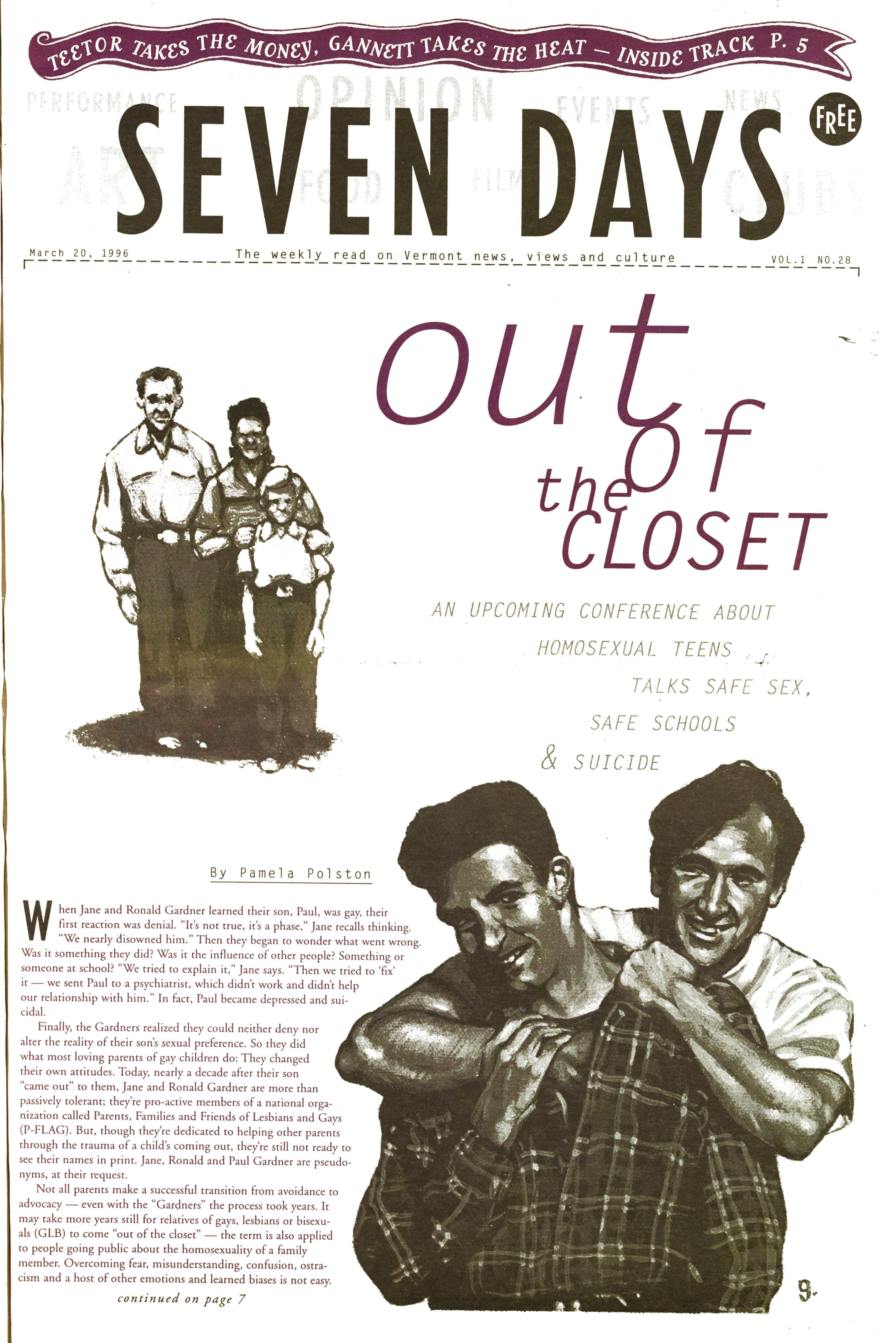 Not all parents make a successful transition from avoidance to advocacy — even with the "Gardners" the process took years It may take more years still for relatives of gays, lesbians or bisexuals (GLB) to come "out of the closet" the term is also applied to people going public about the homosexuality of a family member Overcoming fear, misunderstanding, confusion, ostracism and a host of other emotions and learned biases is not easy continued on page 7