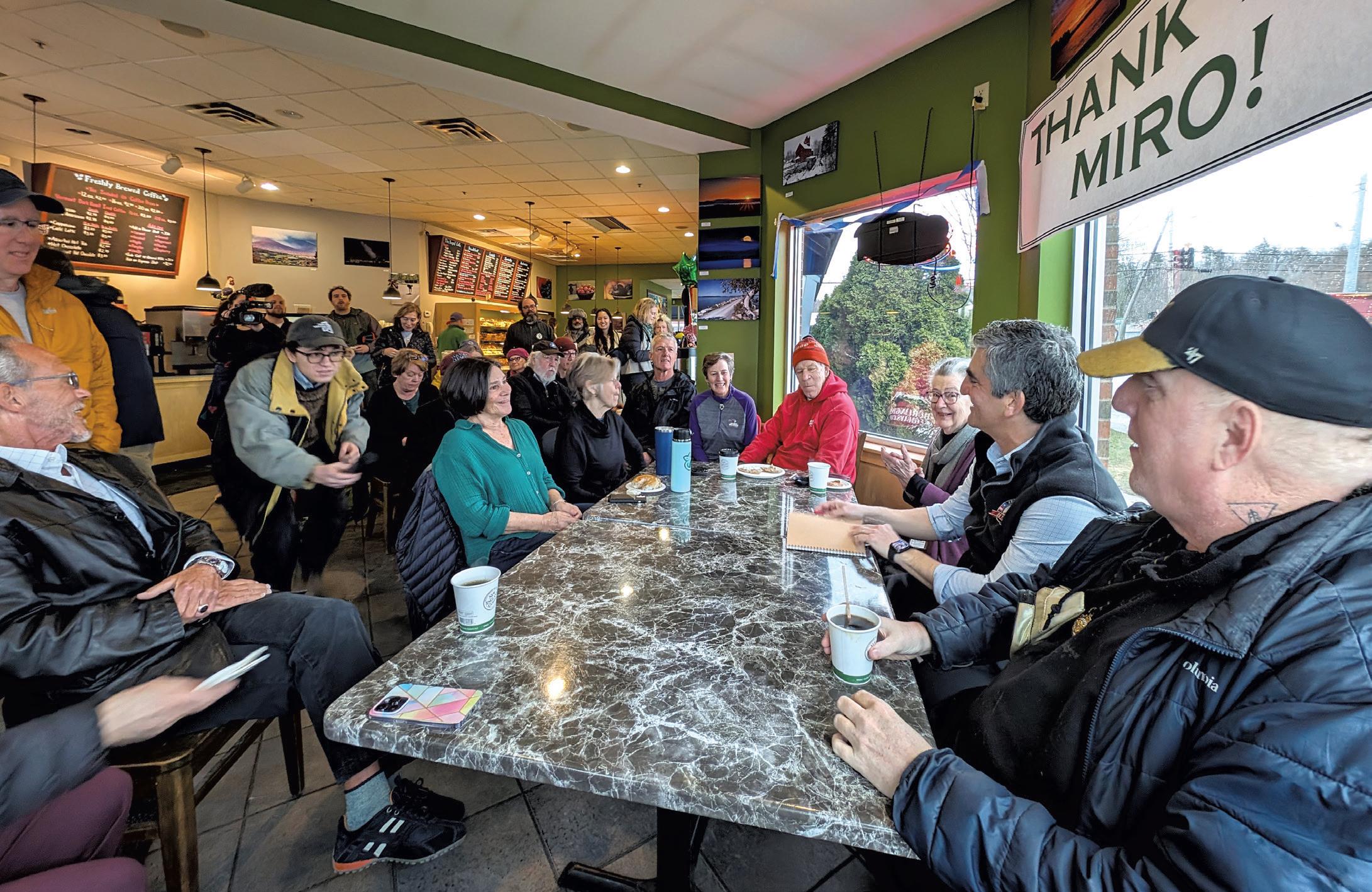 Outgoing mayor Miro Weinberger holds court — for the last time — at “the Bagel”