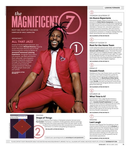 PLEASE CONTACT EVENT ORGANIZERS ABOUT VACCINATION AND MASK REQUIREMENTS. BROWSE THE FULL CALENDAR, ART SHOWS, AND MUSIC+NIGHTLIFE LISTINGS AT SEVENDAYSVT.COM. SEVEN DAYS MAY 25-JUNE 1, 2022