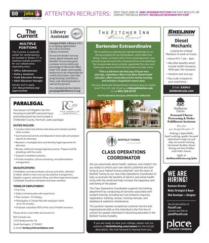 POST YOUR JOBS AT JOBS.SEVENDAYSVT.COM FOR FAST RESULTS, OR CONTACT MICHELLE BROWN: MICHELLE@SEVENDAYSVT.COM