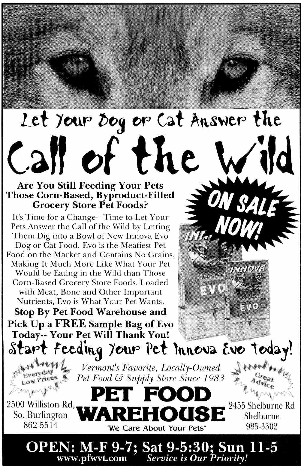 Join Pet Food Warehouse’s legendary customer service team as a full-time or part-time Retail Sales Associate No experience necessary. Will train ideal candidate. Competitive wages, flexiblehours and benefits. Apply in personat: 2500 Williston Road South Burlington, VT
