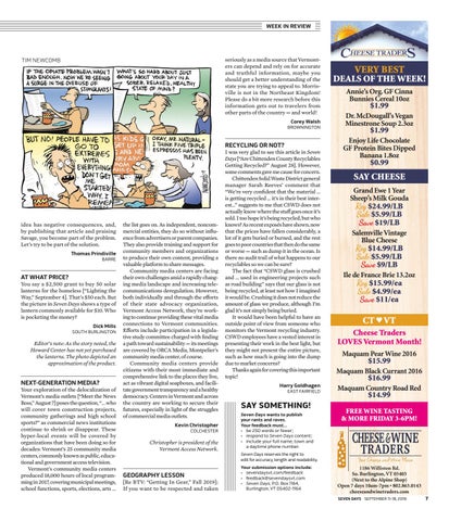 1186 Williston Rd. So. Burlington, VT 05403 (Next to the Alpine Shop) Open 7 days 10am-7pm • 802.863.0143 cheeseandwinetraders.com SEVEN DAYS SEPTEMBER 11-18, 2019 4v-cheesetraders091119.indd 1