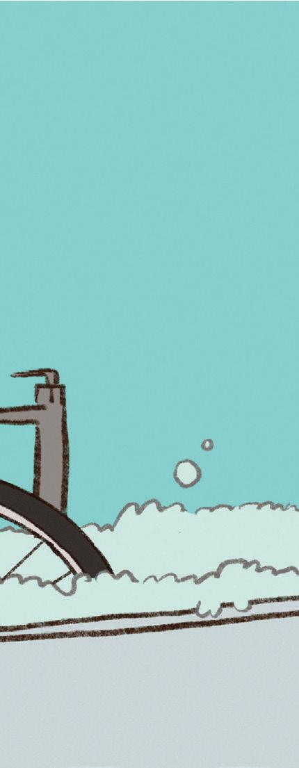 had — and hadn’t — pedaled across. e number seemed to constantly change. e River Road Covered Bridge in Troy, for instance, burned down in February 2021, before Gerstle could traverse it. She was able to cross Lyndon’s Sanborn Covered Bridge in June of this year, just two months before officials ordered it dismantled and removed to prevent flood damage.