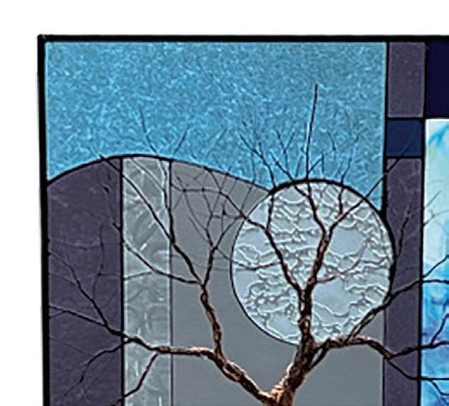 Terry Zigmund started working with glass in her E-1 studio on Pine Street back in 2000 and o cially opened Burlington Community Glass Studio in 2004. She’s known for her wireand-stained-glass tree pieces made to hang in windows, each one a bit di erent from the next. “Part of what’s fun about these for me,” Zigmund said, “is just the infi nite variety of colors and textures and combinations I can do with them.”