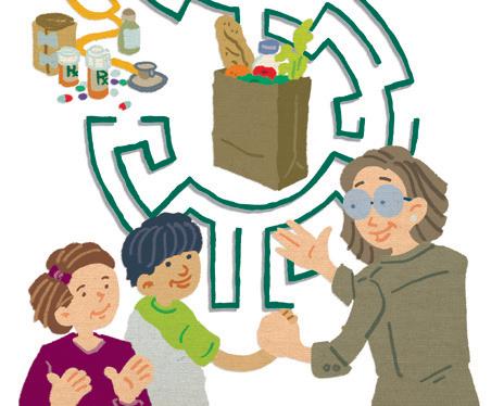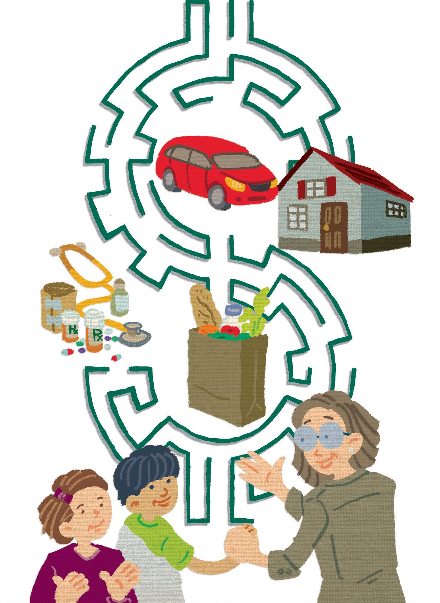 Jeff Drew’s layered illustration highlights money topics relevant to families.
