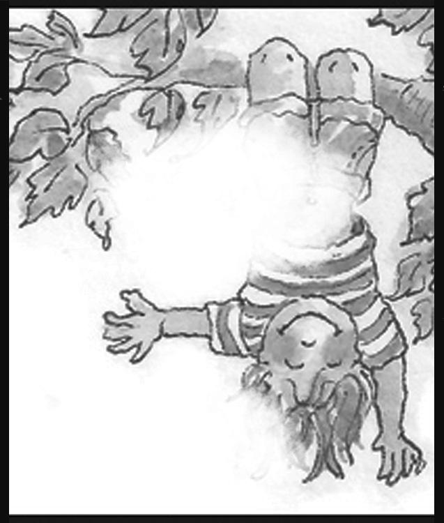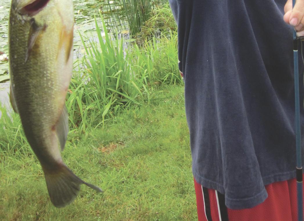 We were supposed to look for evidence of wildlife. My son Graham ran o with a friend, so my daughter Ivy and I searched on our own. We didn’t see much until I noticed tadpoles swimming in the pond. They were some of the biggest I’d ever seen, with long, sleek tails, and round, half-dollarsized bodies.