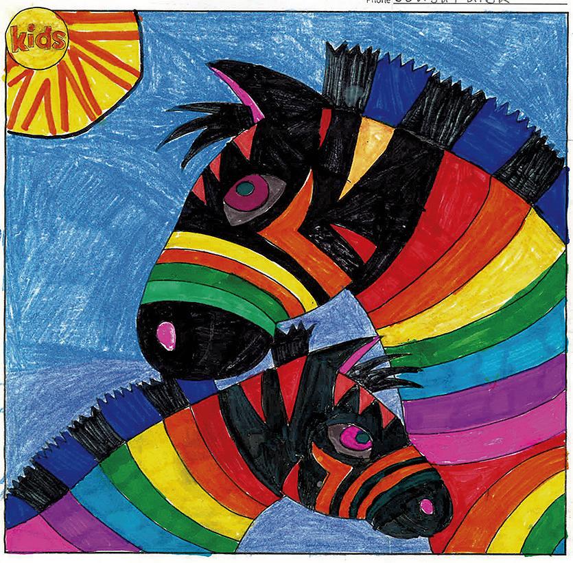 Radiant rainbows and vibrant spring green burst into our o ce in May, brightening the beginning of the summer season. In her carefully constructed mosaic, Eliza Lynch, 7, mixed sparkly metallic markers with colored crayons to create zebra stripes. Tayden deMeurers, 10, drew a delightful display of blues, greens and gold. Curlicues filled a turquoise sky in Violet Mercieca’s masterpiece. This month’s marvelous entries impressed our judges mightily. Keep up the magnificent work, kiddos.
