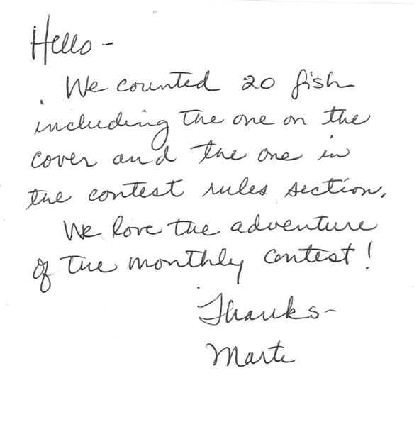 Tim & Kelley Dunham of Spofford, NH and Erin, Gabe & Harrison Grimm of Williston correctly counted 20 fish swimming through the pages of the August issue. They’ll be heading to Ausable Chasm with their winnings: free passes!