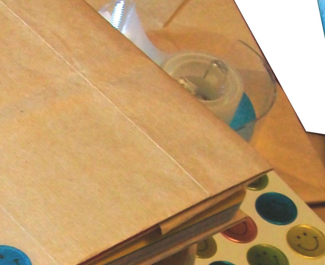 As kids’ textbooks begin piling up in lockers and backpacks, here’s a new twist on a classic method of protecting them. Recycle paper grocery bags to make book covers using the tried-and-true method described below. Then place comic strips, pictures of favorite pop stars, meaningful quotes or helpful hints on the cover and encase it in contact paper, making the cover more memorable — and durable! Add schedule reminders or other useful information on the inside flaps. Contact paper even works as a dry-erase surface. Draw a tic-tac-toe or hangman board on your book covers and you’ve got a little extra entertainment in your bag. Just don’t do it during class.