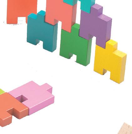 Kids love to make things and take them apart again, and three new building toys from Burlingtonbased Learning Materials Workshop support that kind of open-ended constructive play. COLORATURO is a prismatically-colorful block set, VILLETTA o ers blocks with angles and triangles reminiscent of cottage roofs, and TAVOLINO combines blocks, bobbins and tubes. Karen Hewitt — artist, early childhood educator and toy historian — designed all three. Creative Child magazine recently honored Hewitt’s MAD Constructs block set with the Toy of the Year and Seal of Excellence distinctions. Hewitt collaborated with the New York City-based Museum of Arts and Design to create it. —K.L.