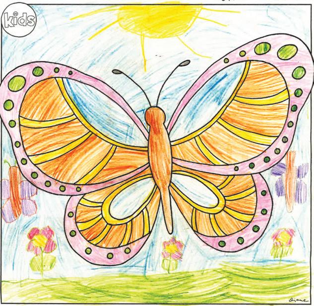 The beautiful butterflies we received in August made our hearts flutter. The Olympics were clearly on many young illustrators’ minds, as flags of many nations mixed with glittery rainbows and bright sunflowers. Emilia, 8, prettied her creature’s wings with peace signs and added an enormous sparkly sun. Fouryear-old Francisco’s butterfly flew through a turquoise sky, over a bed of flowers with long, brown roots. Eleven-year-old Shea’s masterpiece, with precise patterns of black and orange that called to mind the monarch, drew admiring oohs and aahs. Can’t wait to see what the creative kiddos have in store for this month!