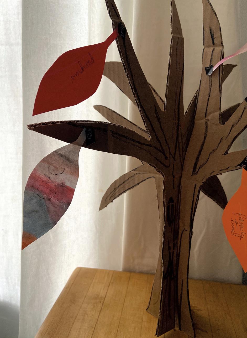 Cooking and baking have been a source of comfort, especially for my 13-year-old daughter and me, during this time. We’ve already started brainstorming a gourmet menu of ambitious, from-scratch dishes like wild-rice-stu ed peppers and cranberry curd pie. Since my husband and son are vegetarians, we might even skip the turkey, which feels somehow liberating. Whatever our final menu is, we’ll be buying the bulk of our ingredients locally, as Meredith Bay-Tyack suggests in “Growing Up Green” on page 8. We might even make a Gratitude Tree as a centerpiece and fancy place mats using the abstract art techniques Emily Jacobs describes in “Art Lessons” on page 18.