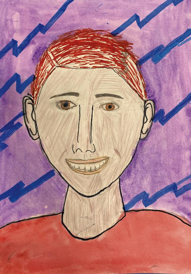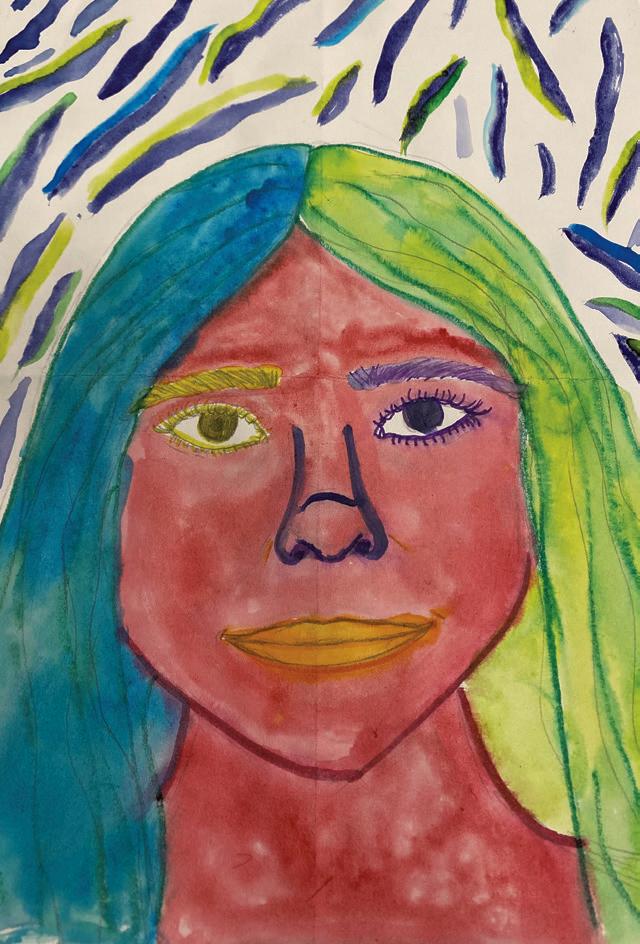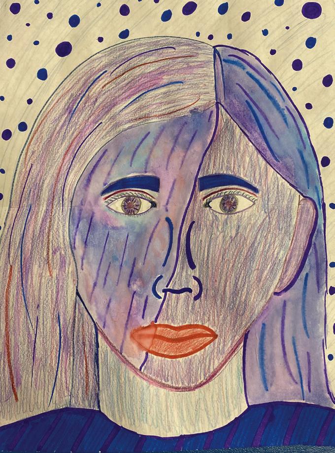 For another project, students created self-portraits after learning about proper facial proportions. They also learned about the emotions of color and researched what colors they connected with emotionally. Student used those colors to paint, draw and color in their portraits.