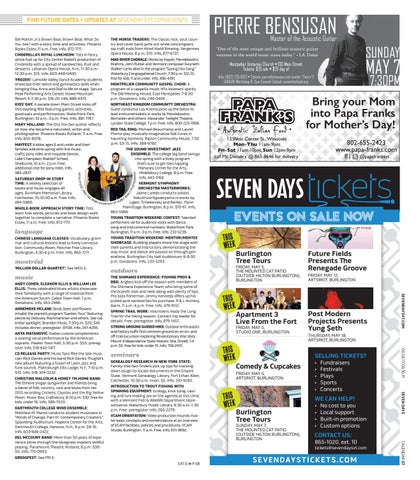 FIND FUTURE DATES + UPDATES AT SEVENDAYSVT.COM/EVENTS
