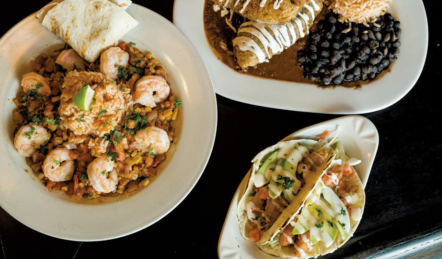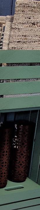 e thatched-roof tiki hut ceilings in the main bedroom and bath were swapped out for real ceilings and walls, decorative stained-glass windows, and a walk-in closet with a private outdoor deck and new hot tub. e main bath got a fresh vanity, tub and standing shower. Not all of the heretofore hideousness ended up in a dumpster. e monkey-themed kitchen cabinets were repurposed into hallway mirrors.