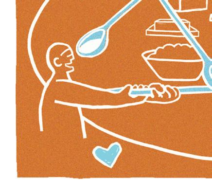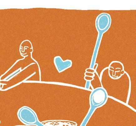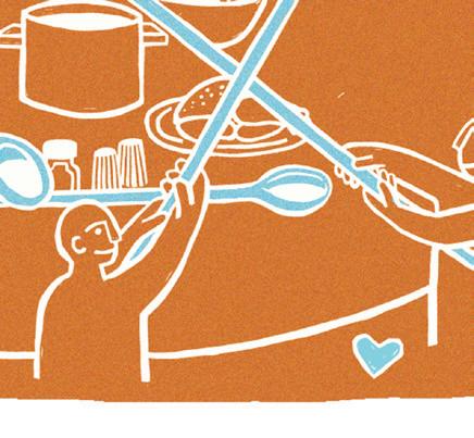 e dinners are named after a parable in which two groups of people sit around a large pot of stew. Each has a long-handled spoon — so long that the people cannot feed themselves. At one table, representing hell, people starve in frustration. In heaven, though, people use the spoons to feed each other.