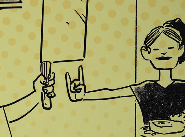 My husband is obsessed with cooking shows, and our TV plays Food Network 24-7. I enjoy watching it, too, but he seems to have decided that he’s the next Top Chef. I know I shouldn’t complain, but if I have to eat another sous vide lamb shank, he’s going to get chopped. How do I let him know that sometimes all I want is a regular lasagna or tomato soup with a grilled cheese sandwich?
