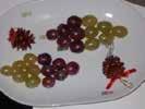 • La primera presentación es muy sencilla, ideal sobre todo si no tenemos tiempo para preparar nada más elaborado. Se trata de colocar las uvas en forma de racimo (si lo hacemos con uvas de dos colores queda muy original) añadiendo al plato algún toque navideño.