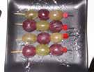 • Otra idea es preparar brochetas, pero jugando con los colores de las uvas, de forma que que vayan formando un dibujo.
