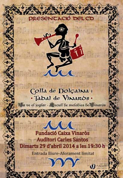 El proper dimarts 29 a les 19:30 a l’Auditori Carles Santos de la Fundació Caixa Vinaròs, la Colla de Dolçaina i Tabal de Vinaròs tindrem el goig de presentar el nostre primer CD de músiques del joglar de Vinaròs, gravat el passat mes de juny de 2013. Allí podreu adquirir el CD pel mòdic preu de 6€.